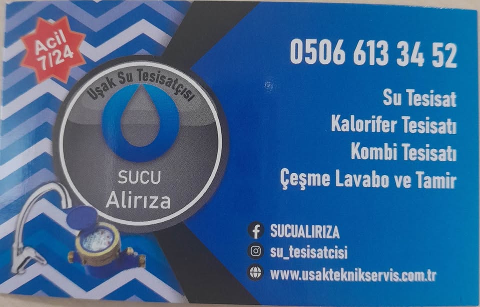 Uşak su tesisatçısı* Uşak Su Tesisatı :Uşak Genel su tesisat arızaları, tamiri, bakımı ve komple tesisat hizmet* Uşak Kalorifer Tesisatı :Uşak Kalorifer tesisat, yenileme ve bakımı. Radyatör temizliği ve montajı* Uşak Doğalgaz Tesisatı :Uşak Doğalgaz tesisat yapımı, proje, montaj, Kombi ve panel satışı* Uşak Su Kaçakları :Uşak Daire tesisatlarında, su kaçakları tespit ve onarımı. * Uşak Rezervuar Montajı :Uşak Rezervuar (iç takım) değişimi ve satışı * Uşak Batarya Montajı :Uşak Batarya, musluk satışı ve montajı. * Uşak Tıkanıklık Açma :Uşak Lavabo, banyo ve klozet tıkanıklıkları açımı işlemleri için arayınız. Uşak Su Tesisatçısı Sucu Alirıza 0506 613 34 52